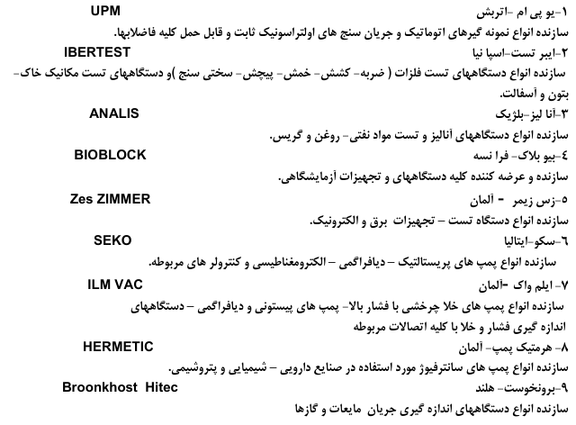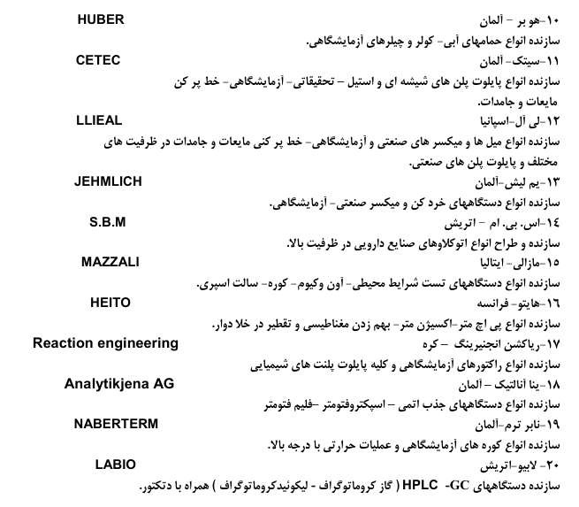 تولید، طراحی، مشاوره، راه اندازي و آموزش را به نمايندگي از كارخانجات توليد كننده ذيل از اقصي نقاط جهان عهده دار و به شرح ذیل می باشد…